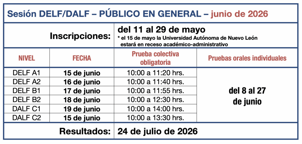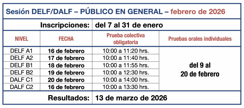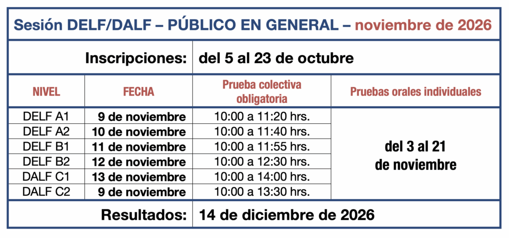 Calendario DELF DALF público en general 2026