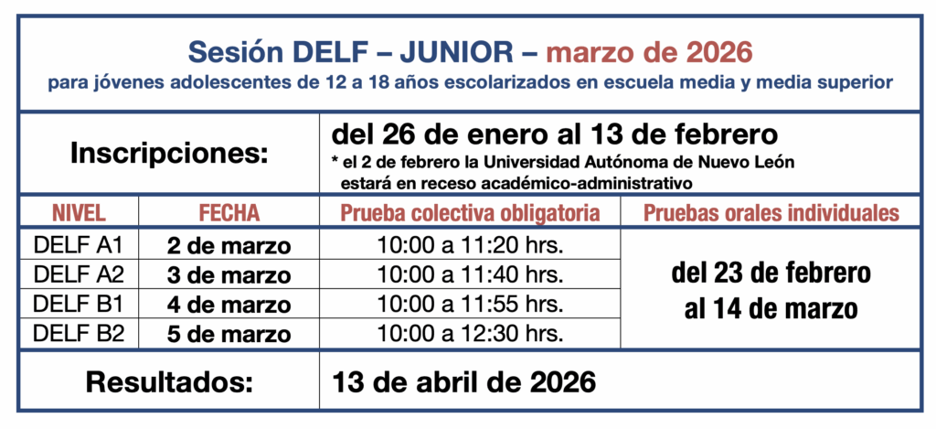 Calendario DELF Junior-2026